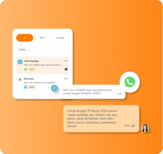 Layanika dapat membantu hotel dalam mengelola percakapan tentang reservasi tamu, permintaan layanan, serta dukungan pascakunjungan pelanggan dengan cepat dan efisien