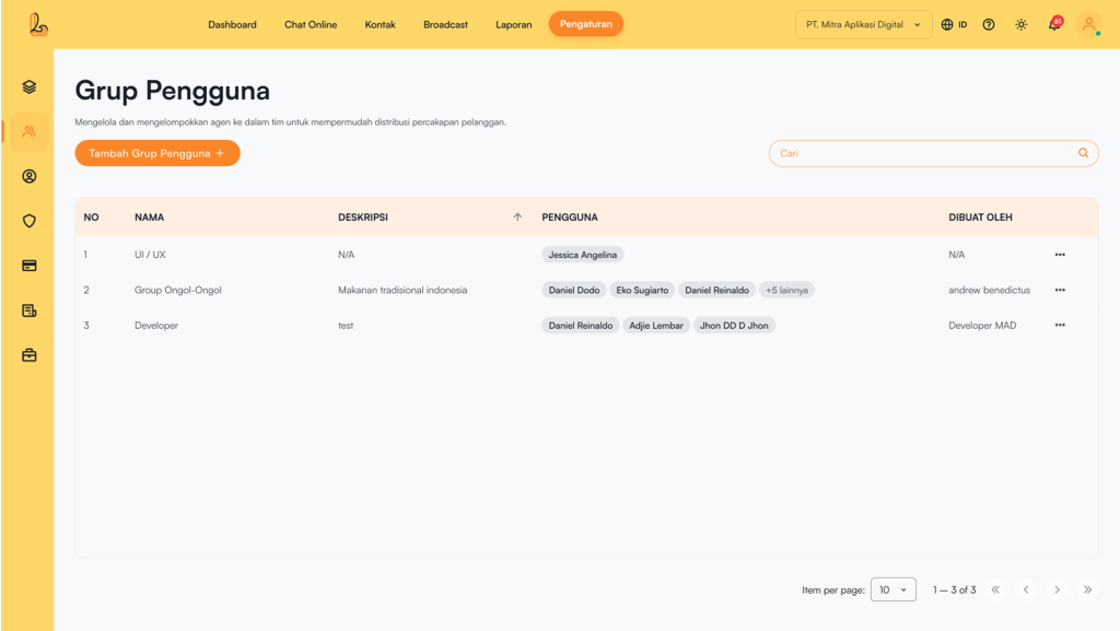 | Aksi | Menu untuk mengelola grup (edit atau hapus) |