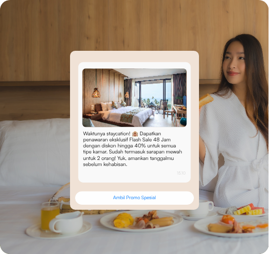 Layanika dapat membantu hotel dalam mengelola percakapan tentang reservasi tamu, permintaan layanan, serta dukungan pascakunjungan pelanggan dengan cepat dan efisien